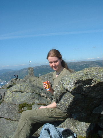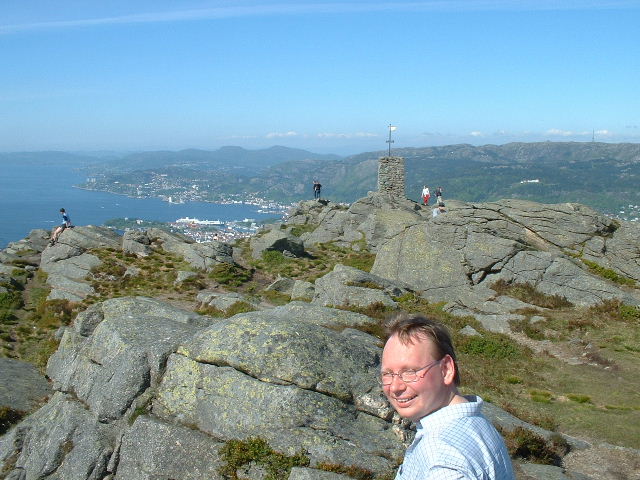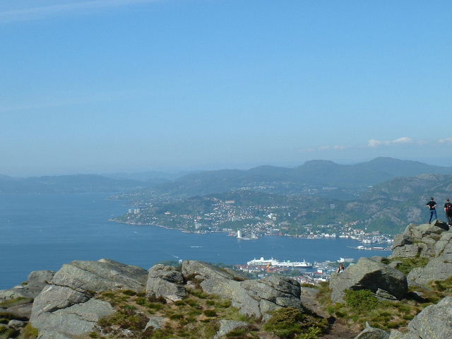 | Ýmsar eldri myndir Jólamyndir Aurdal Hemsedal 2003-1 Hemsedal 2003-2 Páskar 2003 Sumar 2003 Jötunheimar 2003 Växjö 2003 Myndir frá Bergen o.fl. Ferming í Grimstad í apríl 2005. Margrét, Sigurður Árni, Kristín kona hans og synir sem búa í Noregi. Vorstemming í Harðangursfirði í apríl 2005 á leið í ferminguna í Grimstad. Queen Mary 2, stærsta skemmtiferðaskip í heimi var í Bergen í júlí 2004 og tókum við þessar myndir á milli skúra....Flutningaskipið sem er fyrir aftan Queen Mary á mynd númer 2 sýnir vel stærðina á Drottningunni. Síðasta myndin sýnir svo veðrið daginn sem Queen Mary var í heimsókn, "dæmigerður" sumardagur í Bergen :-) Í kringum Bergen eru 7 fjöll (Lyderhorn 396 mys, Damsgårdsfjellet 350 mys, Løvstakken 477 mys, Ulriken 642 mys, Fløyen 400 mys, Rundemannen 560 mys og Sandsviksfjellet 417 mys). Við höfum gengið á 4 þeirra og hér að neðan eru nokkrar myndir frá því við gengum á Rundemannen og Fløyen í júlí 2004. Við höfum einnig gengið á Ulriken og Løvstakken, sjá myndir hér nokkru neðar á síðunni. Í næsta nágreni við okkur búa hestar, villisvín, kindur og hænsn. Á leiðinni á skíði í Hemsedal veturinn 2004 rákumst við svo á "villinaut" Í kringum Bergen eru 7 fjöll og höfum við gengið á tvö þeirra, Ulriken og Lövstakken. Ulriken er hæsta fjallið af þessum 7, rúmir 600 m.y.s.. Lövstakken er heldur lægra, 477 m.y.s., en er rétt við eldhúsgluggann hjá okkur. Hérna eru nokkrar myndir frá því þegar við gengum á Ulriken. Hérna eru svo myndir sem við tókum á Lövstakken um hvítasunnuhelgina 2004. Garðurinn við sumarbústað Haraldar konungs, sumarbústaðurinn í baksýn. Aðsetur konungsfjölskyldunnar í Bergen, séð út um stofugluggann. Stofan okkar í Paradís og loks Brúskur í snjónum í Bergen