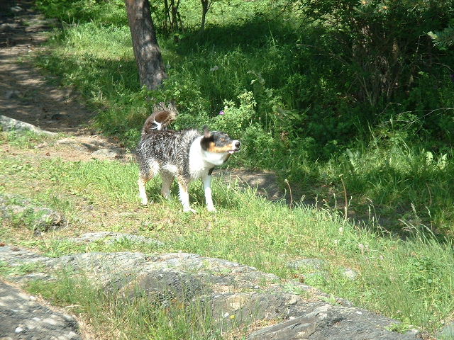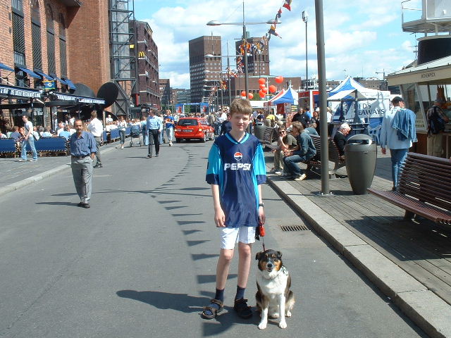 Osló í lok júní 2003. Danmörk: Olgeir, Stefán og Brúskur fyrir framan fasteignasölu í Liseleie á Sjálandi. Í sumarbústaðnum, Didda og Örn í heimsókn frá Svíþjóð. Í Bon Bon skemmtigarðinum á Sjálandi. Þetta var í fyrsta skipti sem Brúskur fær að fara með í skemmtigarð og afrekaði hann m.a. að detta út í vatnið þegar hann var að fara frá borði í einu vatnaleiktækinu.... Á ströndinni og loks hópmynd við sumarbústaðnum. Útkrift Stefáns frá BI 19. júní 2003 Brúskur sofandi og að labba með Stefáni og Þorsteini, 13 júní Sirrý, Margrét og Brúskur úti í garði Á ströndinni að kenna Brúski að synda - takið eftir tungunni á honum á þriðju myndinni...! Í Tusenfryd skemmtigarðinum Stebbi og Þorsteinn föttuðu ekki að hlaupa í burtu þegar vatnsgusan kom....og urðu frekar blautir! |