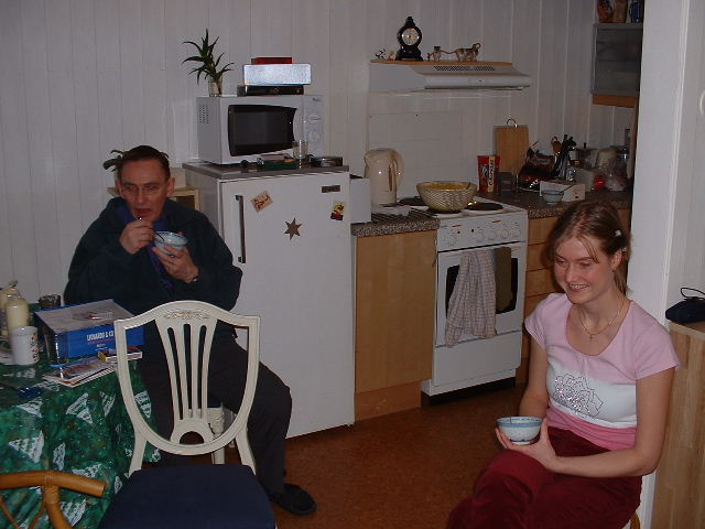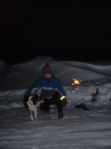 | Jóla- og áramótamyndir jólin 2002 Viđ (Stefán) tókum forskot á sćluna og skutum upp nokkrum flaugum fyrir mat á gamlársdag. Brúskur er ekkert sérlega ánćgđur međ hávađann og vill helst láta halda á sér ţegar skotiđ er upp. Ţađ tókst ţó ađ ná nokkrum myndum af honum, en eins og sést á fyrstu myndinni er hann hálf hrćddur. Ţađ hefur veriđ kalt í Osló, takiđ eftir frosnu hárinu á Margréti á síđustu myndinni. Áramót í Osló. Ađfangadagur - Matargerđin tókst ágćtlega. Hamborgarahryggur á borđum (eđa ţađ nćsta sem viđ komust ţví). Pakkar teknir upp (ţađ borgar sig ađ flytja til útlanda mv. fjölda pakka sem viđ fengum). Fín mynd af Margréti ofl Ađ lokum fína jólatréđ okkar :-)